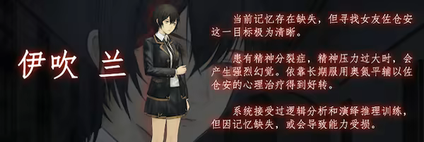 《回溯依存》是一款探索类冒险游戏,伊吹兰为寻找神秘失踪的女友奔波各地,却在某日发现自己不知何时来到了一间神秘的老旧学校。尽管伊吹兰只想尽快离开,但是突如其来的杀人事件和学校里接踵而至的谜团,使她不得不留在这里。